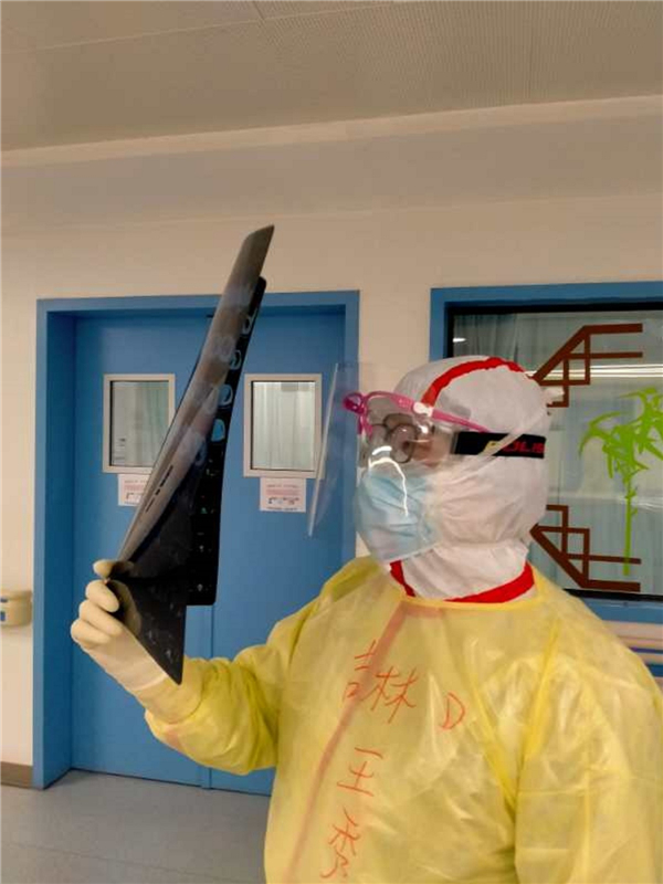 As a member of the first medical team from Jilin supporting Hubei province, Wang Xiujiang reads a CT scan at the Zhongfaxincheng campus of Tongji Hospital affiliated with Huazhong University of Science and Technology in Wuhan in March, 2020. [Photo provided to chinadaily.com.cn]