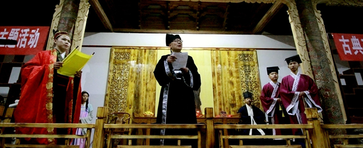 Fans of Chinese national studies, or guoxue, gathered at the Ganszhou Guoxue Institute in Zhangye city, Gansu province on Nov 22 to study and publicize traditional Chinese culture.