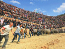 Miao villagers in Guiyang, Guizhou province, perform a drum beating ceremony on Wednesday in an age-old Miao festival honoring the dead that has been listed as part the city's intangible cultural heritage.