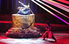 Actors perform in a dance drama depicting the legend of Zhigealu, a mythical hero of Yi ethnic group, at Liangdu Grand Theater in Liupanshui city, Southwest China's Guizhou province, Aug 14, 2017.