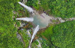 The "triple falls" in Shibing, Southwest China's Guizhou province, shown from an aerial view photo taken on July 7, 2017.