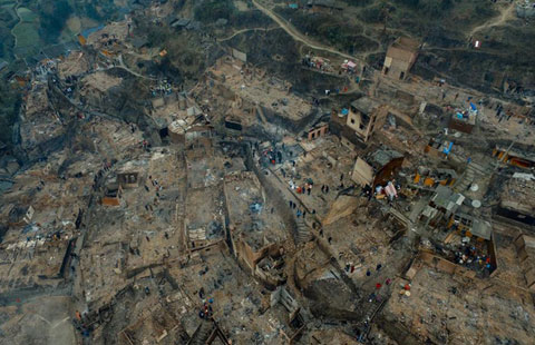 A catastrophic fire broke out on Feb 20 in the village of Wenquan, in Guizhou province, destroying one community.