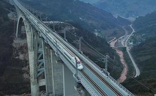 China's longest concrete arch railway bridge supports trial run in Guizhou