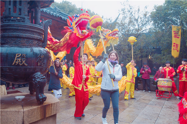 I am at Taibo Temple in Wuxi Hi-tech District, a major tourist attraction in Jiangsu province, and have joined a group of foreign visitors on a two-day trip starting on Feb 12, attending the annual Taibo Temple Fair being held the following day.