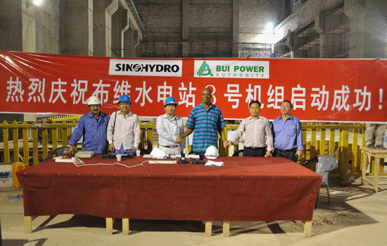 As the No 3 generating unit started up successfully and was puts into operation, the key project, Bui Power Station in the Republic Ghana and constructed by POWERCHINA, has been put into commercial operation, which means that its commercial operation is ahead of the schedule, and the target of "Putting three units into operation in one year" for the project will be achieved by 2013.