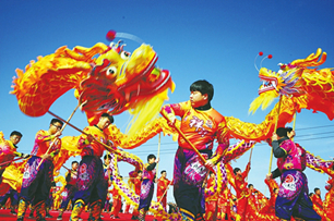 Villagers demonstrated dragon dancing in Deshengbao village, Datong city, Shanxi province, March 18.