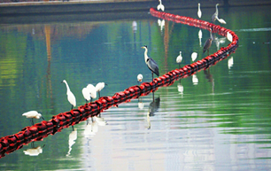 Egrets foraged for food at Fenhe River scenic area, Taiyuan, Sept 2.