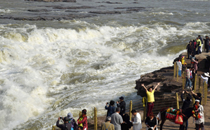 The water of Hukou Waterfall has become clearer as the water supply of the Yellow River’s trunk stream has decreased and silt has settled.