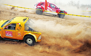 Vehicles raced during an off-road vehicle challenge competition in Qixian county, Shanxi province, Jan 20.