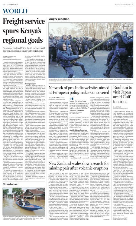 WELLINGTON-Two Chinese citizens were among 47 people on New Zealand's White Island when a volcano erupted on Monday, New Zealand police said on Tuesday. Their names haven't yet been released.