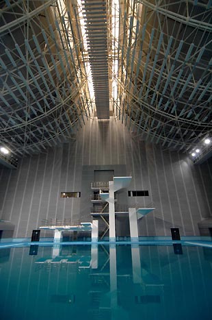 Ying Tung Natatorium, the arena to hold the water polo finals and the swimming events of Modern Pentathlon of the 2008 Beijing Olympics, has finished its enlargement construction. The photo was taken on September 7, 2007. [Xinhua]