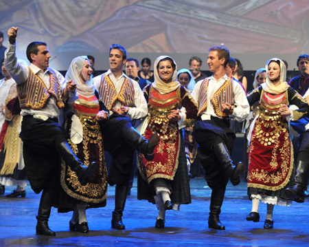 Greek artists perform a folk dance during the opening show of the "Meet in Beijing 2008 Arts Festival", in Beijing, June 23, 2008. The theme of the cultural event this year incorporates the Olympic Games. [Xinhua]