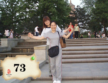 My best friend and I pray for our victory of the 2008 Olympics. This photo was taken in front of the Wild Goose Pagoda in Xi'an.