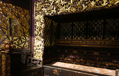 A luxury, golden antique bed claimed as the "No 1 bed in the world" is the most precious treasure in the Bayu Ancient Bed Museum in Chongqing municipality.