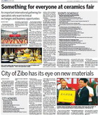 Events schedule11th Zibo International Ceramics Exposition. Modern ceramics show, Sept 6-9Zibo International Convention & Exhibition Center.