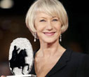 Helen Mirren poses with her award on the red carpet at the Rome Film Festival October 23, 2009.