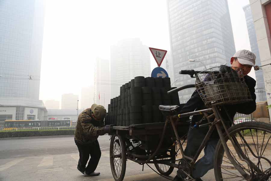 Zhang Weiling (left) and Qiao Fengtian are, like most coalmen, temporary workers who toil in the sector during the coldest season.