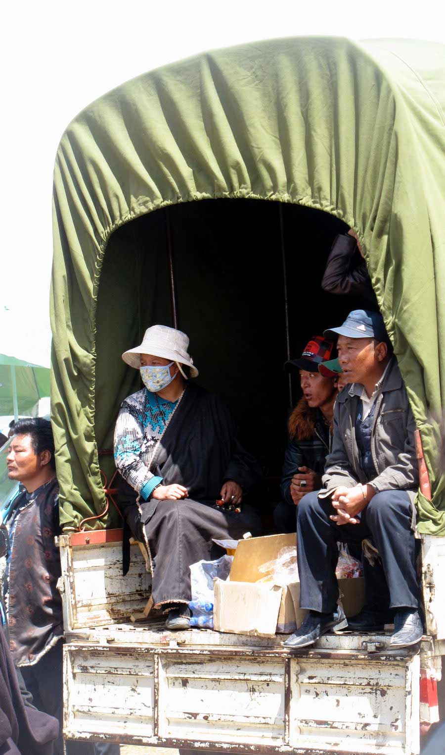 Nomads watch a basketball game from the back of a covered truck in Qumahe's county seat in Qinghai province's Yushu prefecture in 2011. [Photo by Erik Nilsson/chinadaily.com.cn]