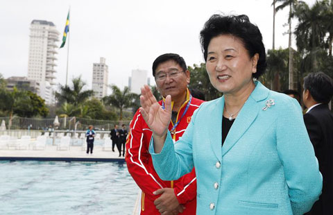 Chinese vice premier Liu Yandong visited Chinese athletes on Wednesday in Sao Paulo training camp and encouraged them to do their best in the Rio Olympic Games.