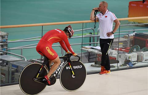 Chinese track cycling team does warm-up training in Rio for the upcoming Rio Olympic Games, August 4.