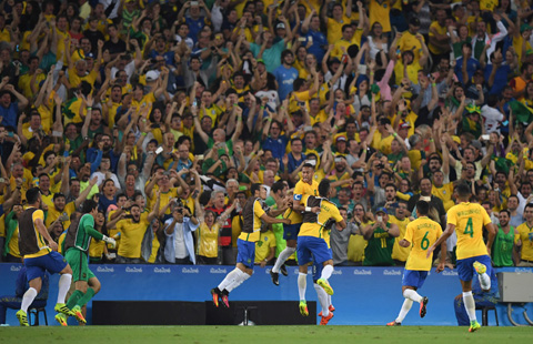 Neymar converted the decisive spot-kick as Brazil ended their long wait for Olympic soccer glory with a dramatic penalty shootout victory over their 2014 World Cup tormentors Germany here on Saturday.