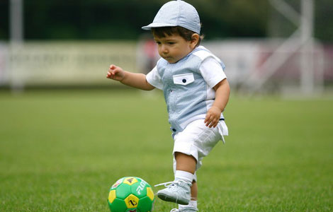 The son of Guangzhou Evergrande midfielder Dario Conca joins a training session on Thursday.