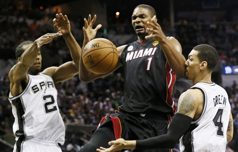 LeBron James had 37 points and 12 rebounds and the Miami Heat repeated as champions with a 95-88 victory over the San Antonio Spurs in Game 7 of the NBA Finals on Thursday night.