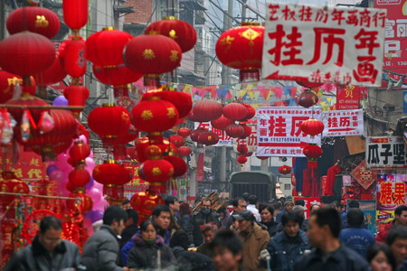 Shoppers crowd a market of New Year decorations, snacks and food in Wuhan, central China’s Hubei province January 5, 2009. [Xinhua]