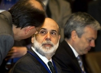 US Federal Reserve Chairman Ben Bernanke (C) at an finance meeting in Washington, DC on April 12, 2008. The Federal Reserve is expected to cut rates as a last move in an aggressive easing cycle aimed at averting a deep economic slump. [Agencies]