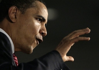 Democratic presidential hopeful, Sen. Barack Obama, D-Ill., speaks at a town hall-style meeting in Charleston, W. Va., Monday, May 12, 2008, in anticipation of the state's primary election Tuesday. [Agencies]