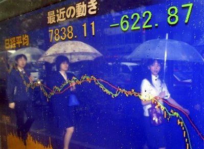 Sony's news "was yet another indicator that the global economy is really slowing," said Yutaka Miura, senior strategist at Shinko Securities in Tokyo. "The revision had a very negative impact on other tech-related stocks," such as Panasonic Corp. "Investors remain worried over growing uncertainty about the state of the global economy," Miura said. Asian markets seemed to shrug off a rebound in European markets and the Dow Jones industrial average on Thursday. Japan's Nikkei 225 stock average was down more than 7 percent to 7,847 in afternoon trading -- a 5 1/2-year low -- while Hong Kong's Hang Seng fell 4.6 percent to 13,125. The dollar, meanwhile, fell to a 13-year low in Tokyo trading amid worries about a slowdown in the US economy. The dollar sank to 95.32 yen, the lowest since August 1995. "The stronger yen is hurting Japanese exports, which is a big part of that country's economy," said Linus Yip, a strategist at First Shanghai Securities in Hong Kong. South Korea's stock market fell sharply for a second day as figures showed the economy there was slowing. The Kospi was down nearly 9 percent to 9,550, falling below the 10,000 mark for the first time in more than three years. Economic growth in South Korea, Asia's fourth-largest economy, was measured at 3.9 percent in third quarter, the slowest since the second quarter of 2005. Markets in Thailand, Indonesia and the Philippines were also down sharply as investors bailed from emerging markets around the world to cut their exposure to risky assets and meet redemption needs at home. On Thursday, key indices in Russia, Brazil and Mexico also fell. "Funds are pouring out of emerging markets," Yip said. "A lot of money that flowed into the region during the last five years from the US and Europe is being cashed out. The global crisis has come to Asia." Electronics giant Sony Corp. plummeted 12.4 percent to 2,005 yen after it cut its annual profit and sales forecasts. Sony said Thursday afternoon its net profit for the fiscal year through March 2009 would likely drop 59 percent from the previous year to 150 billion yen (US$1.5 billion). It blamed deteriorating sales of flat-panel TVs and other gadgets for the dismal projection. Previously, Sony had expected to post 240 billion yen (US$2.4 billion) in profit for the fiscal year. Overnight in New York, the Dow rose 2 percent to 8,691.25, while the Standard & Poor's 500 index rose and the Nasdaq fell. Oil rose in Asian trade Friday, with light, sweet crude for December delivery up 55 cents to US$67.39. |