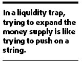 Updated: 2008-12-26 07:51 There is an old joke about economists: They are people who see something working in practice and try to figure out if it would work in theory. Just recently we have seen an example of this when interest rates on US Treasury bills turned negative, meaning the US federal government got paid for borrowing money rather than paying to do so. In theory, this isn't supposed to happen. If market interest rates are negative then people normally just hold on to their cash. But these aren't normal times. The fear of risk is so pervasive that individuals and businesses don't trust even cash and are willing to pay a premium to park their money in Treasury bills. This explains a great deal about what is at the root of the economy's problem today. People are so risk-averse that they are hoarding money, refusing to spend; banks are refusing to lend even to their best customers; and businesses are so desperate for safety that they would rather get a negative return on a safe asset than invest in something remotely risky, no matter how high the potential return. When everyone in the economy suddenly stops spending, the number of times that money turns over falls. Since the gross domestic product equals the money supply times its rate of turnover - something economists call velocity - this means that if the money supply is unchanged then the GDP must fall.