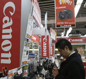 The maker of cameras, copy machines and printers said it had a dismal fourth quarter and expects this year to be even worse than 2008, forecasting a 70 percent plunge in profit. Canon said net profit for 2008 fell to 309.15 billion yen ($3.47 billion), a 37 percent drop from the 488.33 billion yen it made last year. Revenues fell nine percent to 4.09 trillion yen from 4.48 trillion yen. Over the last three months of the year, net profit was less than one tenth of what it was a year earlier, at 11.6 billion yen versus 127.8 billion yen. For 2009, the company said it expects profit to drop to 98 billion yen as revenues slide to 3.5 trillion yen. Like its peers at home and abroad, Canon's sales have plunged as the consumers and companies that buy its products cut back on spending. It reported lower sales of major products including business copiers and computer printers. The company, which got nearly 80 percent of sales from abroad last year, was also hit hard by the strong yen. The Japanese currency has largely stayed below the 90-yen level against the dollar in recent months, near its lowest point in over a decade. Canon, seen as a bellwether exporter by many investors due to its reliance on foreign sales, said it expects sales abroad to fall by almost a fifth this year. Last year it fell victim to the yen's strength even in the rare cases it was able to maintain sales. The company said it increased the number of digital cameras it sold by four percent last year, but falling prices and foreign currency meant revenues fell nearly 10 percent. Canon said foreign exchange movements hurt its revenue by 300 billion yen, a figure it expects to jump to over 400 billion yen this year. Canon's shares inched up 0.4 percent to 2,590 yen in trade Wednesday, in line with the 0.6 percent gain in the benchmark Nikkei 225 index. It announced its results after the market closed. Unlike many other Japanese companies, Canon's fiscal year matches the calendar year. |