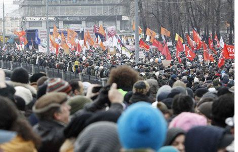 Local media said it was the largest public protest in Russia in almost a decade.