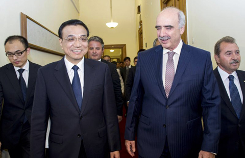 Chinese Premier Li Keqiang met with Greek Parliament Speaker Evangelos Vasileios Meimarakis on Thursday, calling for joint efforts to beef up bilateral parliamentary exchanges.
