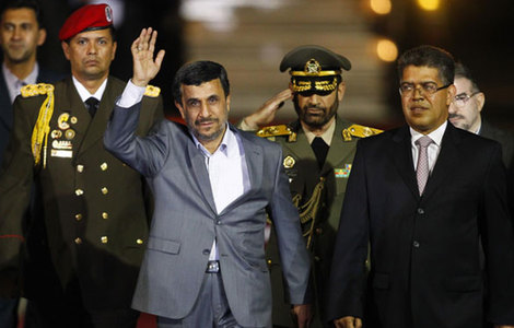 Iranian President Mahmoud Ahmadinejad arrived Sunday in Venezuela, kicking off a four-country Latin American tour.