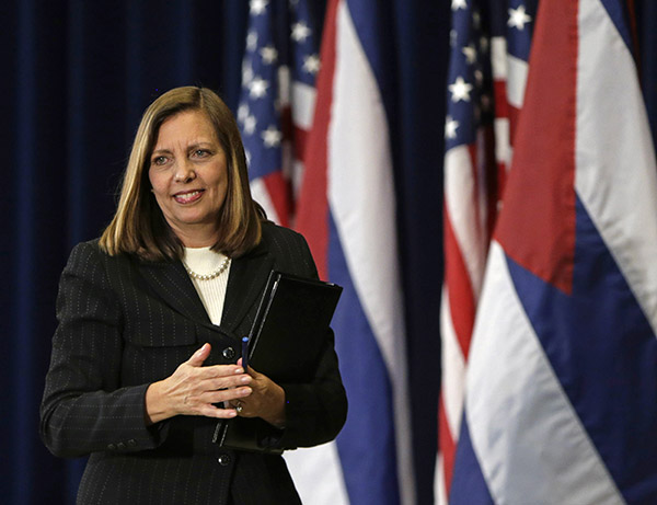 The head of the Cuban delegation, Josefina Vidal, appears at a news conference during talks between the United States and Cuba at the State Department in Washington February 27, 2015. Cuban and US officials held a second round of talks on Friday toward normalizing ties and both sides said they made good progress, although they did not set a date for renewal of diplomatic relations that Washington severed 54 years ago. [Photo/Agencies] |