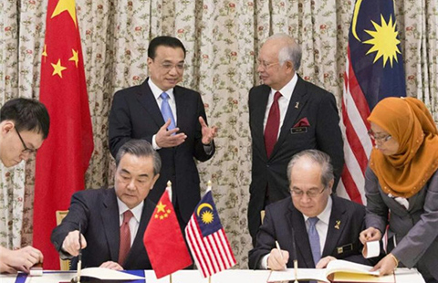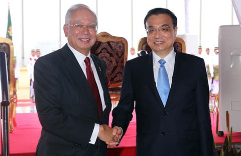 China and Malaysia should work together to advance large infrastructure projects to boost regional interconnectivity and bilateral economic exchanges, visiting Premier Li Keqiang says.