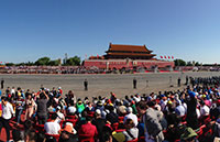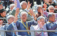 When the vehicles carrying veterans were driven through Tian'anmen Square, onlookers along Chang'an Avenue stood as one to honor the heroes.