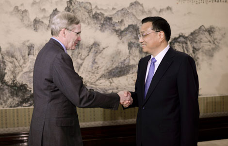 Vice-Premier Li Keqiang on Tuesday elaborated on China's solemn stance over the Diaoyu Islands row with Japan during a meeting with visiting former prominent politicians from the US.