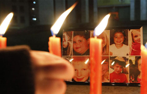 US President Barack Obama vowed on Sunday to battle gun violence, as a Connecticut town prepared to bury the first two victims of last Friday's rampage at an elementary school.