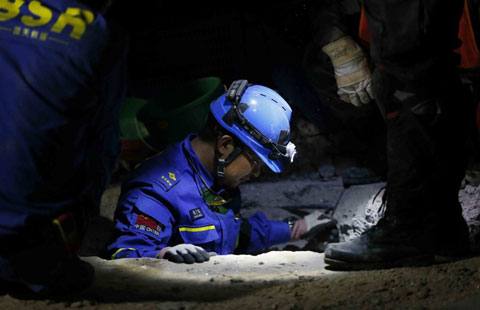 China's rescue team searches for survivors in Nepal