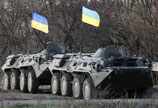 2014-04-16 18:36Troop carriers enter east Ukraine town bearing Russian flag