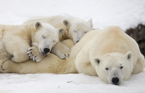 Polar bear cubs Ganuk (R) and Taiga (L) play together at the St-Felicien Wildlife Zoo in St-Felicien, Quebec, November 30, 2010. Ganuk and Taiga celebrated their first birthday today.